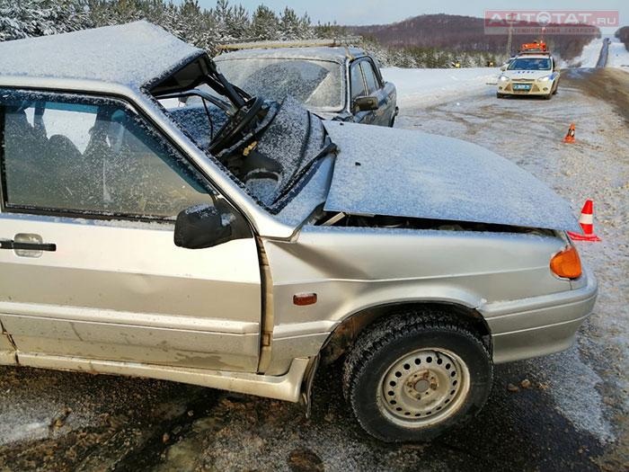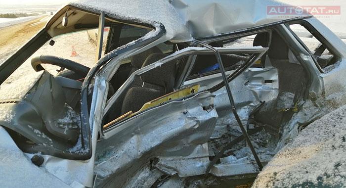 Смертельное ДТП произошло на трассе под Альметьевском. Автоледи на “Ладе” не справилась с управлением и вылетела на встречку. Вся сила удара пришлась на водительскую сторону.