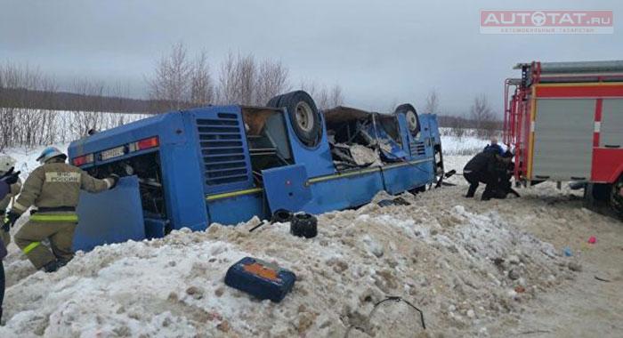 Автобус осуществлял перевозку детей на выступление в филармонию. Его водитель не справился с управлением. В результате автобус вылетел с дороги и опрокинулся на крышу. В настоящий момент на виновника ДТП возбуждено уголовное дело по ч. 5 ст. 264 УК РФ "Нарушение правил дорожного движения, повлекшее по неосторожности смерть двух и более лиц".