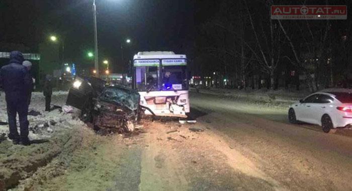В Нижнекамске водитель Лады протаранил автобус. Видео из кабины
