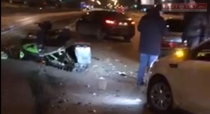 Вчера вечером в Набережных Челнах произошло ДТП с участием снегохода и ВАЗ-2115. Очевидцы записали на видео последствия аварии.