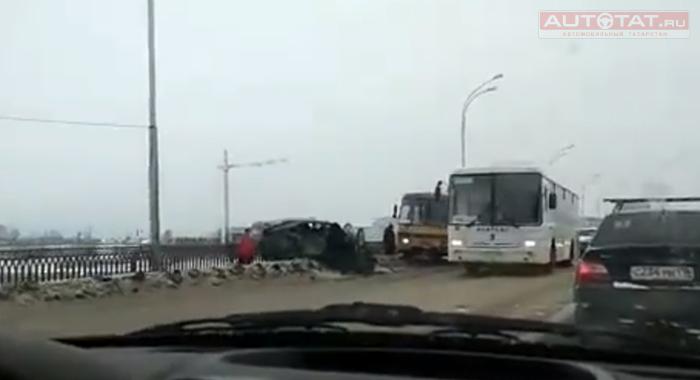 Сегодня утром в Набережных Челнах автомобиль чуть не вылетел с моста. Видео прислал очевидец, сообщают “Челнинские известия”.