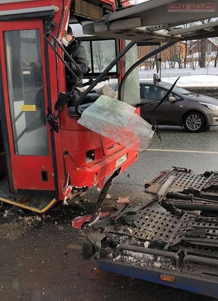 В Казани автобус врезался в автовоз. есть пострадавшая