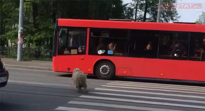 На третьем ролике очевидцы записали, как в центре города по дороге бегает баран. “Кого только не встретишь в Казани”, - написали девушки.