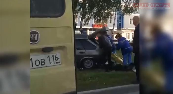 В Челнах легковушка с пьяными подростками врезалась в стену. Видео