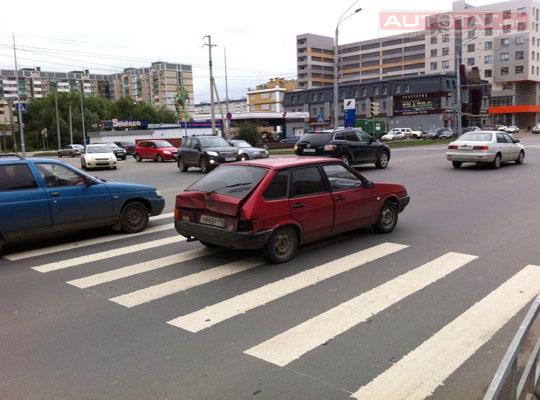 Именно в такой обстановке сегодня случилась авария: водитель автомобиля ВАЗ-2109, следовал по Чистопольской, со стороны Декабристов в сторону Абсалямова, перед сломанным светофором он был вынужден остановится, чтобы пропустить поток машин сворачивающих с Бондаренко и Лермонтова на Чистопольскую. В это же время за ним следовал грузовик КАМАЗ, его водитель не заметил сложившейся ситуации и продолжил движение, не смотря на остановившийся пред ним ВАЗ-2109. Грузовик на небольшой скорости врезался в "девятку", повреждений КАМАЗ не получил, чего не скажешь о легковушке. Задняя часть ВАЗ-2109 сильно повреждена, можно сказать, что весь зад машины это теперь одна большая вмятина.