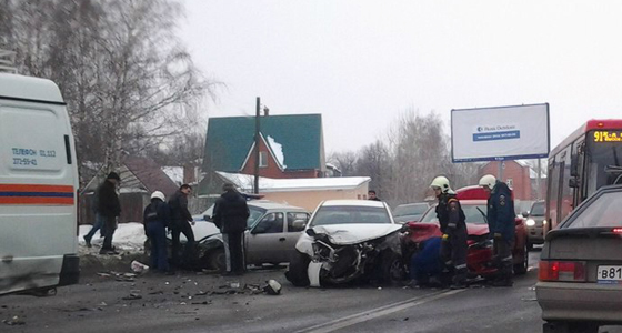 На Сибирском тракте в Казани столкнулись четыре автомобиля.