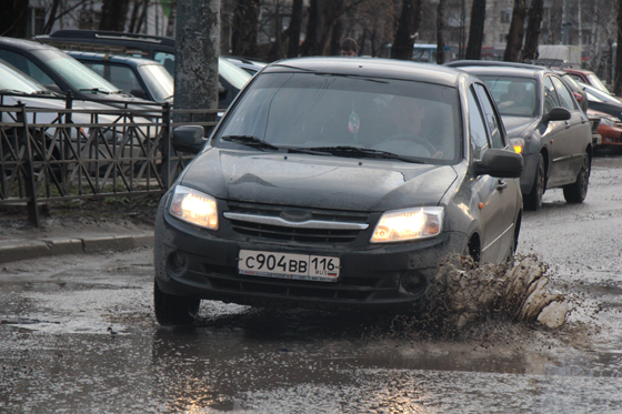 В Казани продолжает держаться плюсовая температура. Снег постепенно сходит с дорог, оголяя ямы и неровности. Если на сравнительно новых магистралях проблемы практически не ощущаются, то вот во дворах и на второстепенных дорогах тающий снег образует целые «озера», скрывающие под собой глубоки ямы и колдобины.