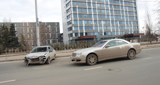 На такую мысль наводят характерные повреждения переднего бампера иномарки, следы шин на асфальте, а также положение обоих атвомобилей.