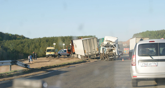 19 мая на трассе М-7 в Мамадышском районе произошло серьезное ДТП с участием двух грузовиков. Авария произошла на опасном участке дороги, где вдобавок ко всему проводились ремонтные работы по расширению проезжей части, сообщает «Новая Кама».
