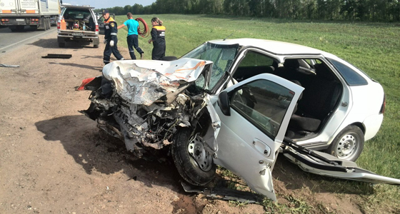 На трассе М-7 произошло серьезное ДТП с участием легковушки и грузовика. Авария произошла на 962 км автодороге Москва-Уфа. Очевидцы сообщают, что водитель Toyota Camry превысил скорость, не учел безопасную дистанцию и врезался в LADA Priora, сообщает avtokazanfirst.