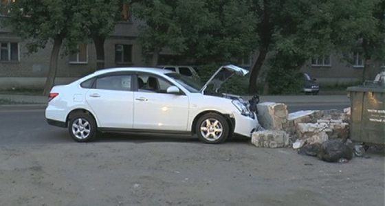 Вчера, 22 июня, автоледи на новеньком автомобиле Nissan протаранила мусорку с бетонным ограждением. Позже она рассказала сотрудникам автоинспекции, что во время поворота не справилась с управлением, однако инспекторы ГИБДД считают, что девушка попросту перепутала педаль газа с тормозом - ведь это был ее первый день за рулем.