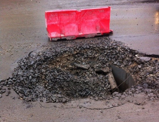 Сегодня на ул. Даурская КамАЗ провалился в огромную яму.