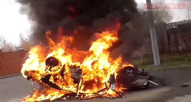 От удара «Мерседес» перевернулся и практически сразу загорелся. Сам же водитель не был пристегнут ремнем безопасности и в момент столкновения вылетел из лобового стекла. Прибывшие на место происшествия медики доставили пострадавшего в больницу.