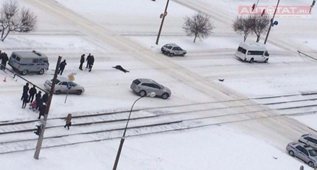 В сети появилось видео смертельного наезда на пешехода. Трагедия произошла на оживленном перекрестке пр. Сююмбике-Автозаводский в Набережных Челнах.