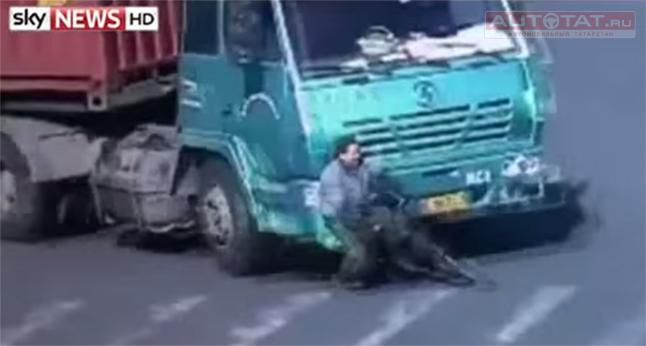 Попав под колеса многотонной махины с прицепом, китаец не просто выжил, а отделался всего лишь легких испугом. Конечно, выглядит ДТП просто чудовищно, однако финал получился вполне себе счастливым – серьезно пострадал лишь велосипед.