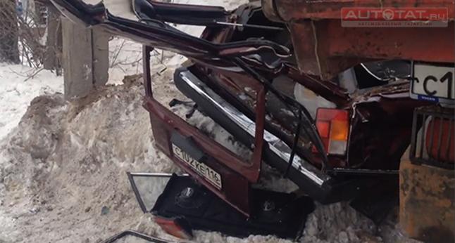 Жуткое ДТП в Казани: легковушку раздавили два грузовика