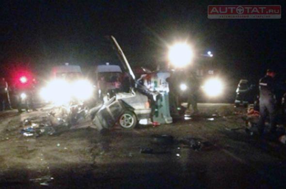 Вчера поздно вечером в Сабинском районе недалеко от населенного пункта Кильдебяки произошло смертельное ДТП, унесшее жизнь пятерых человек. По предварительной информации, Mitsubishi лоб в лоб столкнулась с ВАЗ-2114.