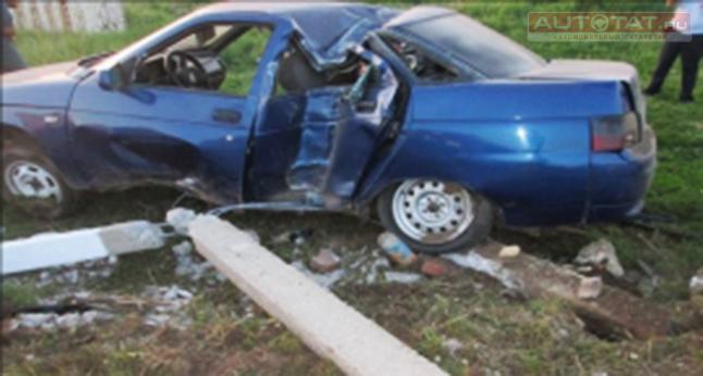 В Татарстане «десятка» врезалась в столб. Один человек погиб, еще пятеро получили ранения.