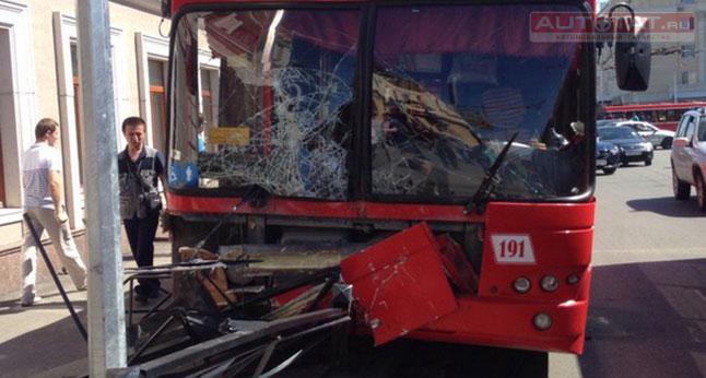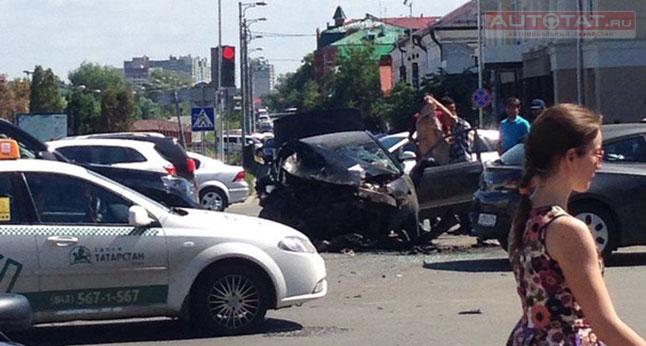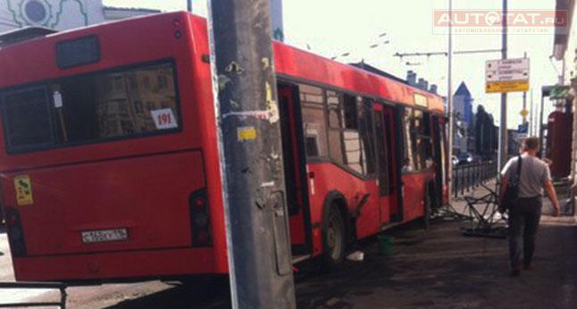 По информации ГИБДД, авария произошла в 13:05 часов. 21-летний водитель Mitsubishi следовал по улице Татарстан со стороны ул. Пушкина в направлении ул. Тукая, где на перекрестке с ул. Московская решил проскочить на запрещающий сигнал светофора и столкнулся с красным автобусом.