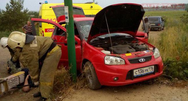 Страшная авария произошла в минувшие выходные в деревне Березовая Грива Нижнекамского района. 29-летний водитель LADA Kalina в состоянии алкогольного опьянения не справился с управлением и врезался в столб.