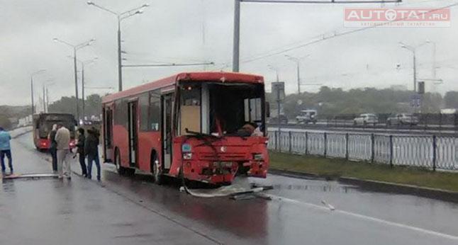 Авария произошла в 9:47. 41-летний водитель автобуса НЕФАЗ двигался по пр. Ямашева со стороны ул. Арбузова в направлении ул. Гаврилова, где напротив остановки «Футбольный стадион Казань Арена» не выбрал безопасную дистанцию и столкнулся с другим автобусом МАЗ-206067 под управлением 38-летнего водителя.