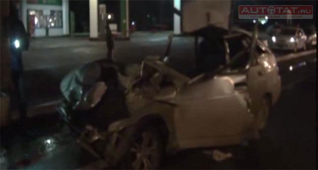 В результате столкновения автомобиля "Лада" и тягача погибли два человека. Видео.