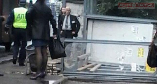 В Казани автобус снес остановку. Есть пострадавшая