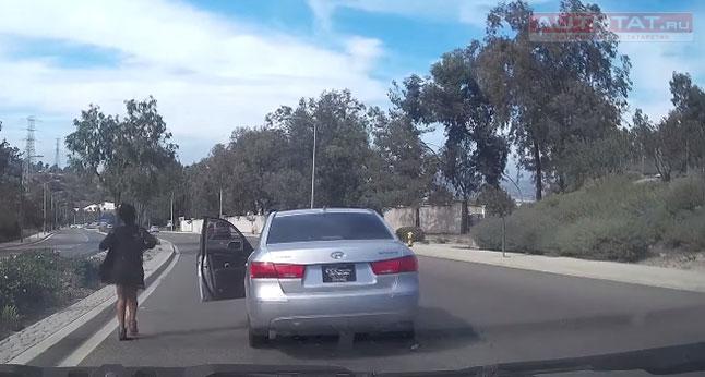 Весьма необычное ДТП произошло в Калифорнии: женщина чуть ли не на ходу выпрыгивает из своей машины и как ни в чем не бывало идет вдоль проезжей части. Предлагаем вашему вниманию видео необычного происшествия.