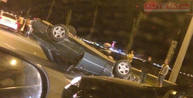 В Казани на Ленинской дамбе перевернулся Mercedes C200