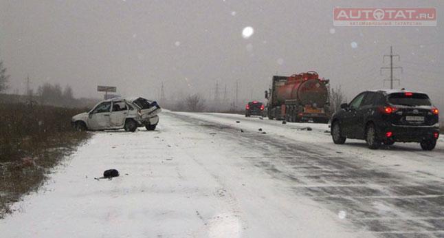 Под Нижнекамском в серьезном ДТП погиб водитель «Калины». Видео момента аварии.