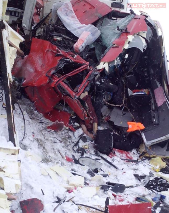 По предварительной информации, авария произошла недалеко от села Поисево в связи с плохими погодными условиями. Очевидцы сообщают, что у одного из большегрузов от сильного удара отстегнулась кабина. Не исключено, что водитель именно этой фуры и погиб на месте происшествия.