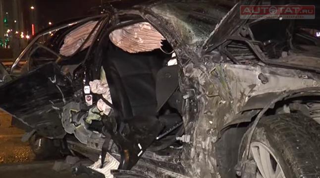 Смертельное ДТП в Казани: BMW на скорости вылетел на газон и врезался в столб.