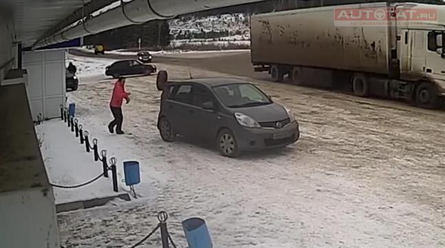 Больше полмиллиона просмотров собрал ролик за несколько дней, на котором женщина чудом спаслась от несущегося сзади гигантского колеса грузовика. Инцидент был запечатлен камерой наружного наблюдения у объездной дороги трассы М7 в республике Удмуртия.