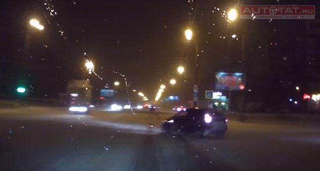 На перекрестке улиц Фучика и Сафиуллина произошло столкновение двух автомобилей: водитель Renault Fluence на скорости протаранил LADA Kalina. Момент ДТП зафиксировал видеорегистратор.
