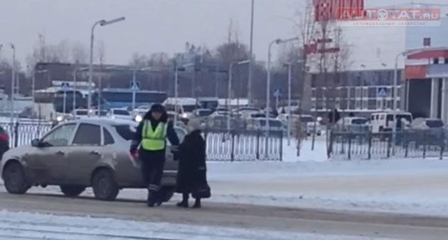 В Казани инспектор ГИБДД перевел бабушку в неположенном месте.