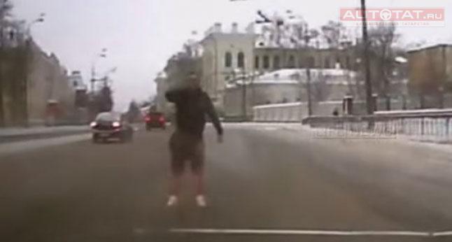 В центре Казани неадекватный мужчина растреливал проезжающие машины. Видео