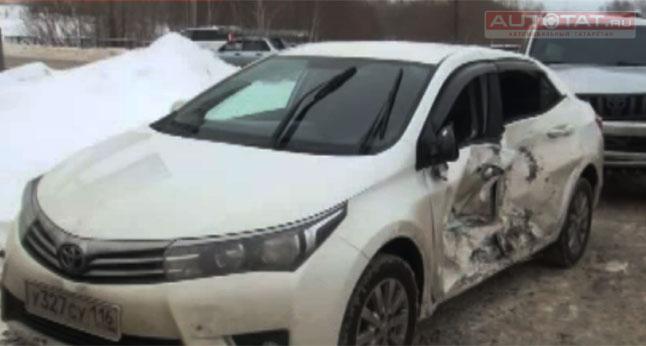 В Казани водитель Toyota выполнил разворот с правой полосы и попал в ДТП. Видео.