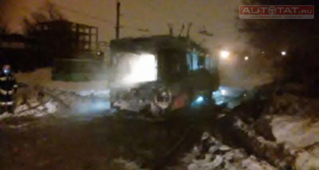 В Авиастроительном районе Казани ночью сгорел троллейбус