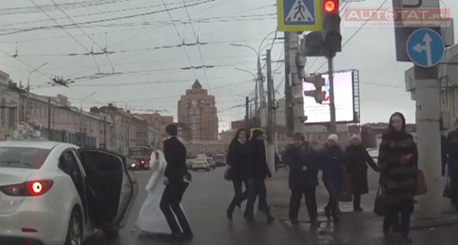 Интернет взорвал очередной скандальный ролик, заснятый очевидцами на дороге. На этот раз видеорегистратор запечатлел настоящий “побег невесты” с собственной свадьбы. Инцидент произошел недалеко от площади Ленина в Туле.