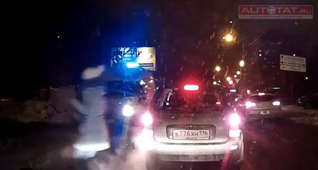 В Интернете появилось видео, на котором видно как водитель скорой помощи сбивает девушку на улице Мавлютова в Казани.