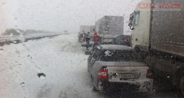 В результате столкновения 12 автомобилей федеральная трасса М-7 была парализована. ФОТО и ВИДЕО