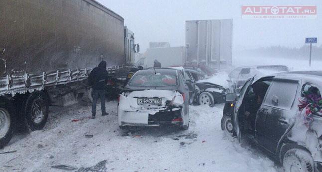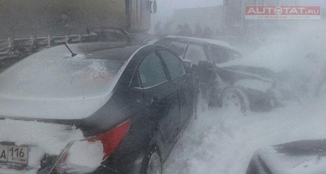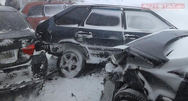Собеседник агентства уточнил, что массовые аварии случились в 9 часов утра на 858 км трассы в Пестречинском районе Татарстана. Там столкнулись семь фур, три грузовика и два легковых автомобилей.