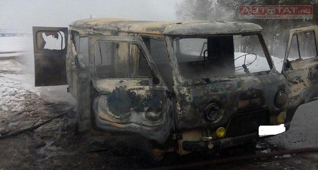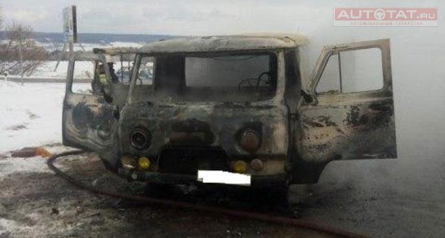 Вчера утром, 1 марта, на 365 км автодороги Казань-Оренбург недалеко от села Исеграпово сгорел УАЗик. Автомобиль принадлежал Альметьевскому УТТ и был припаркован на обочине.