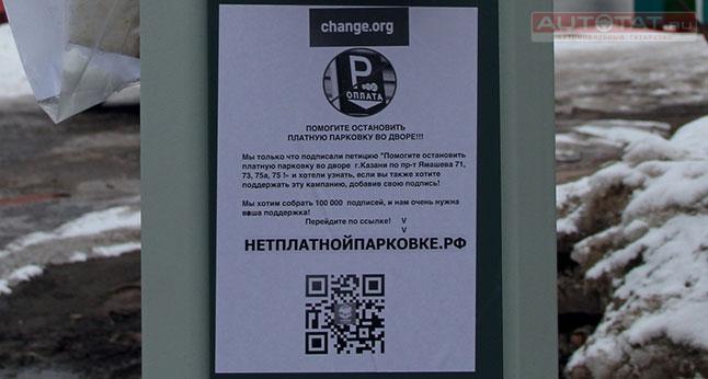 Тем не менее, жильцы домов по адресу Ямашева 71 и 73 составили на имя президента России петицию с просьбой запретить строительство платной парковки в их дворах. По словам казанцев, ее появление отрицательно скажется на экологию, инфраструктуру и архитектурный облик района.