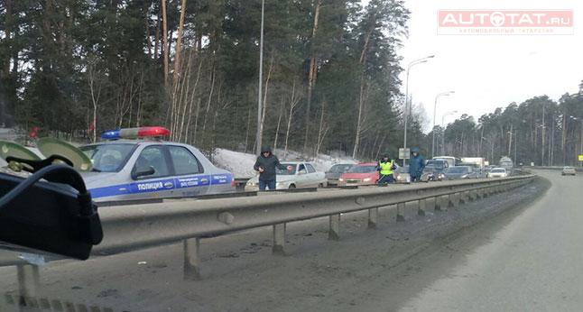 В результате ДТП в направлении от Лебяжьего озера в сторону города образовалась километровая пробка.