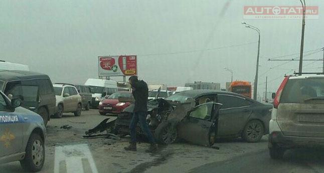 На мосту в Набережных Челнах произошло серьезное ДТП.