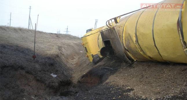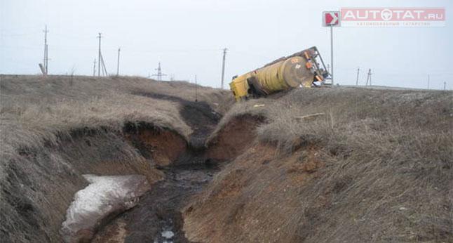 В результате ДТП в Татарстане перевернулся нефтевоз и загрязнил 500 кв. метров почвы.