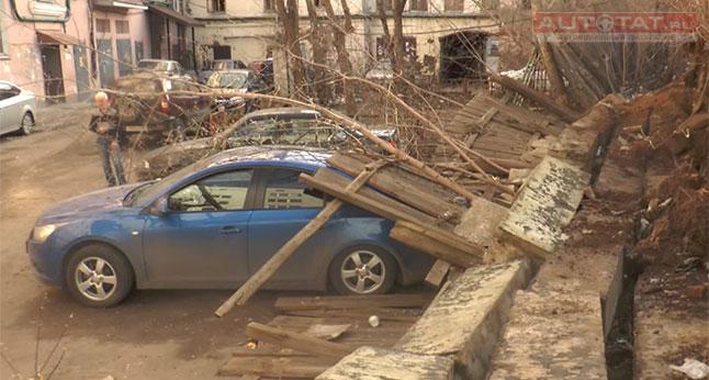 В казанском дворе на припаркованный Chevrolet Cruze рухнул забор. ФОТО