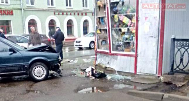 Серьезное ДТП произошло вчера, 17 апреля, на ул. Белинского. Пьяный водитель на Audi A-80 сбил двух 14-летних девочек и протаранил торговый павильон.
