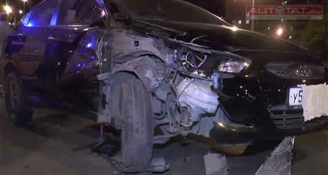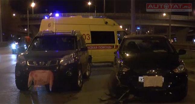 По словам водителя Hyundai, он двигался по проспекту Победы, когда на проезжую часть неожиданно выскочил пьяный мужчина. Чтобы избежать наезда водитель корейской иномарки резко вывернул руль, но по касательно задел пешехода, а затем врезался в Nissan X-Trail.
